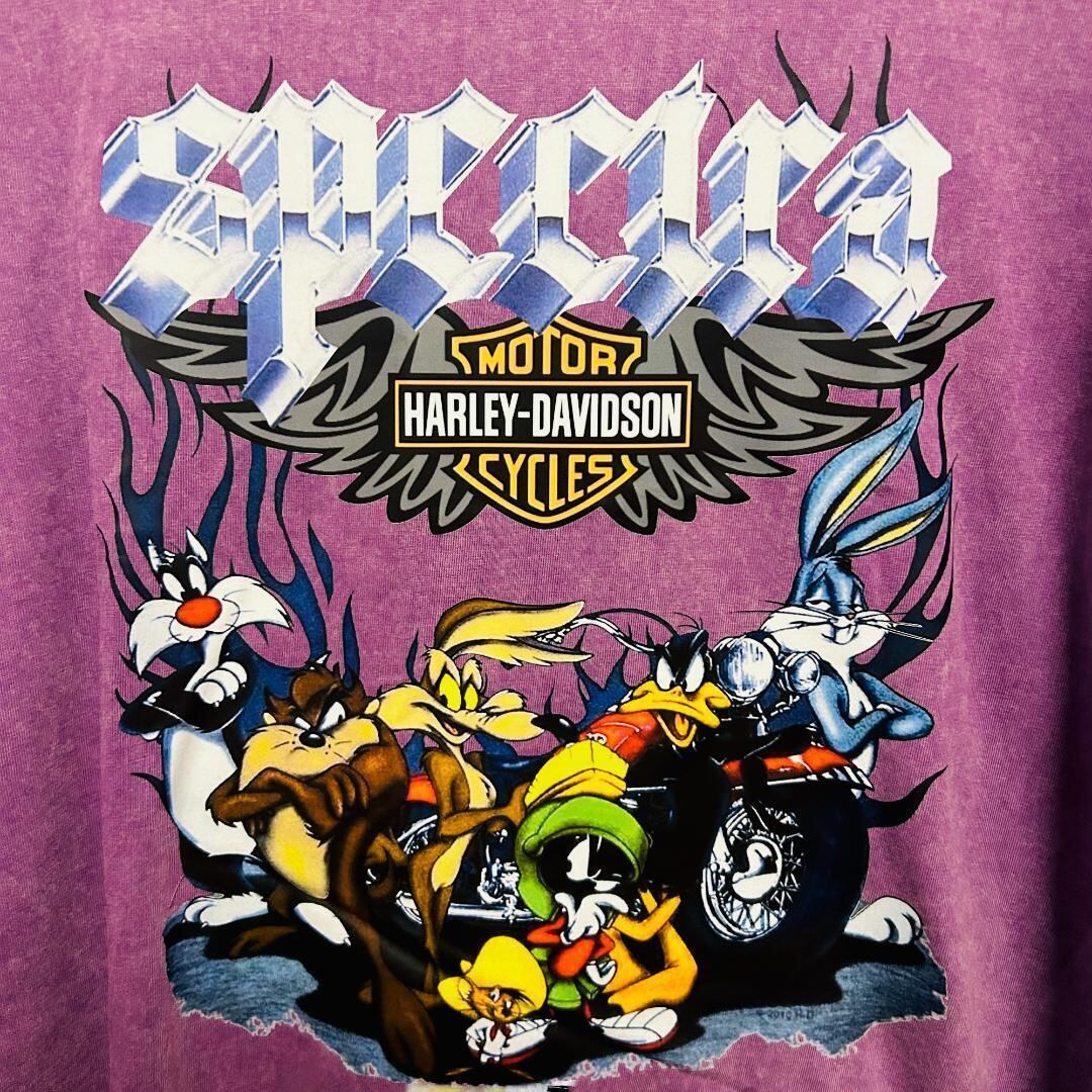 ワーナーブラザーズ ハーレー リプリント Tシャツ 半袖 メンズ 新品 パープル ケミカルウォッシュ 紫 ハイデザイン BUNNY ハーレーダビッドソン