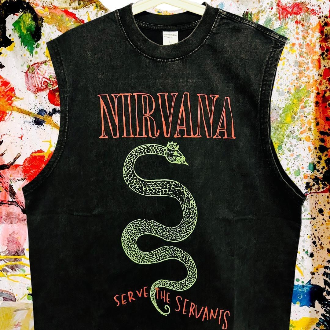 ニルバーナ 蛇 ノースリーブ リプリント Tシャツ 半袖 メンズ 新品 個性的 ニルヴァーナTシャツ Nirvana Tシャツ カートコバーン グランジファッション タンクトップ ノースリーブ
