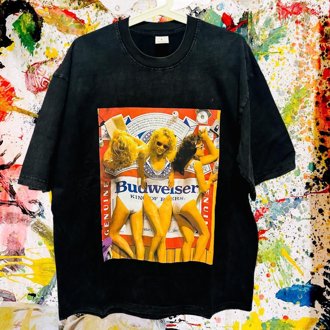 バドワイザー 水着 ケミカルウォッシュ リプリント Tシャツ 半袖 メンズ 新品 ビール BEER ビアー 美女 アメリカンガール 夏 ビーチ フェス 新品 新品未使用 レトロ 個性的 奇抜 エモい バンドT カットソー 攻め 前衛的 ヴィンテージリプリント