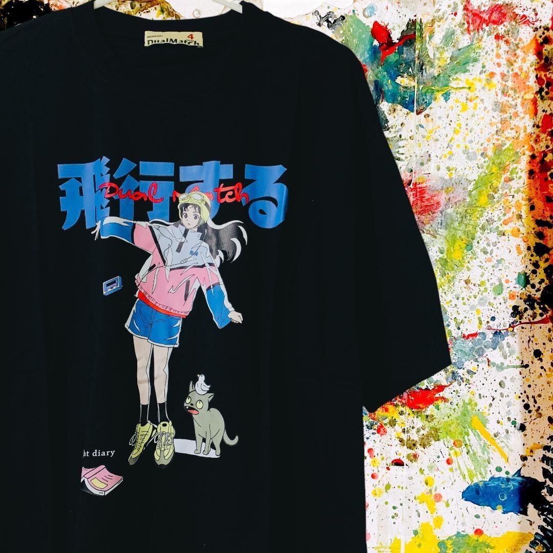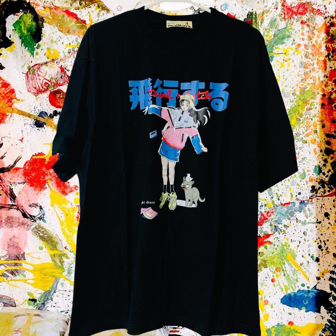 飛行する リプリント Tシャツ 半袖 メンズ 新品 個性的 黒 新品 新品未使用 レトロ 個性的 奇抜 エモい バンドT カットソー 攻め 前衛的 ヴィンテージリプリント 古着 好き綿 男性 衣類 トップス お洒落 ハイデザイン 男性
