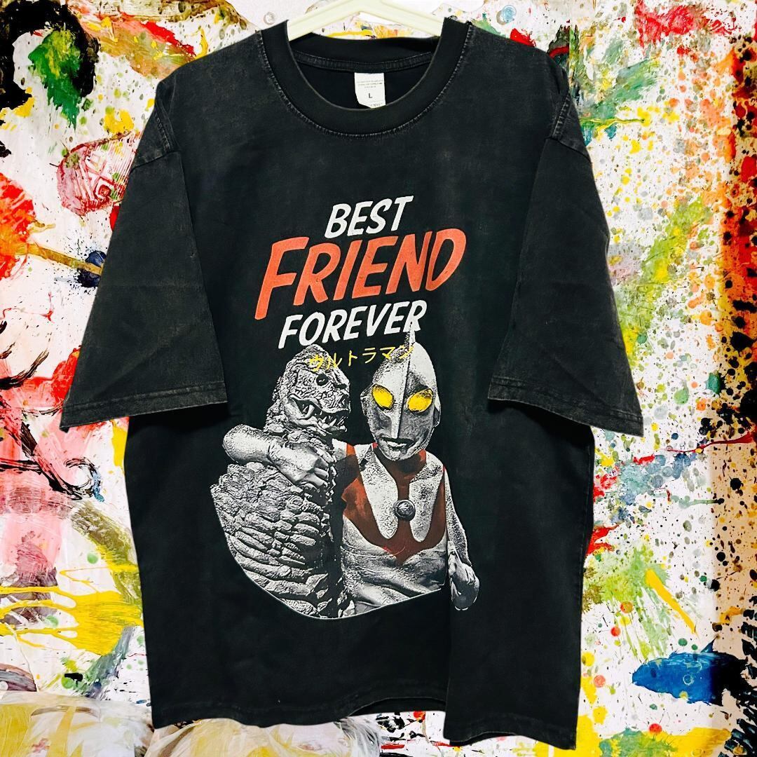 みんな友達 ケミカルウォッシュ リプリント Tシャツ 半袖 メンズ 新品 新品 新品未使用 レトロ 個性的 奇抜 エモい バンドT カットソー 攻め 前衛的 ヴィンテージリプリント 古着 好き綿 男性 衣類 トップス お洒落 ハイデザイン 男性