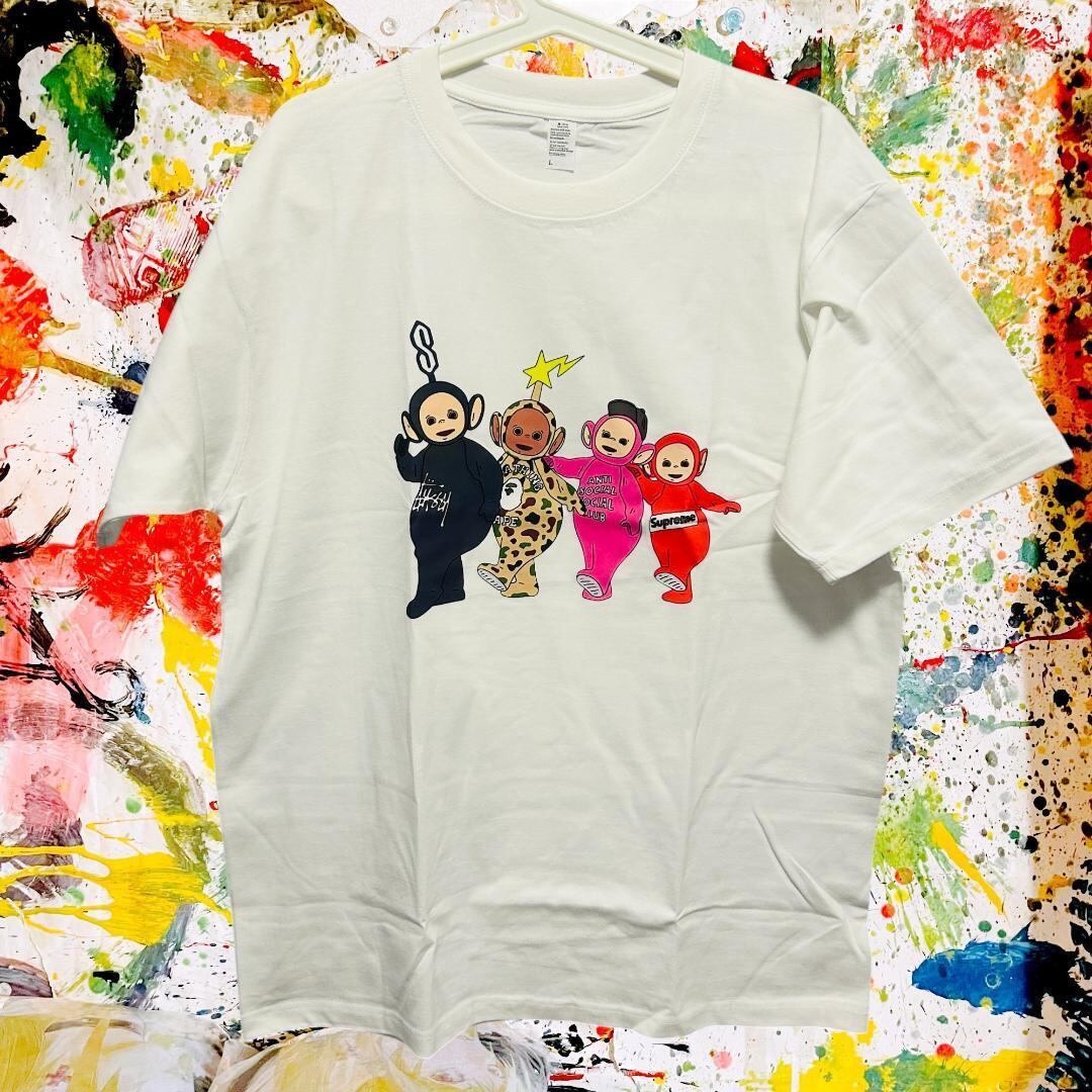 テレタビーズ ブランドロゴ リプリント Tシャツ 半袖 メンズ 新品 ホワイト Teletubbies ティンキーウィンキー、ディプシー、ラーラ、ポー ハイデザイン 個性的 ハイデザイン 攻め 春 夏 男性 トップス カットソー お洒落 キャラクター