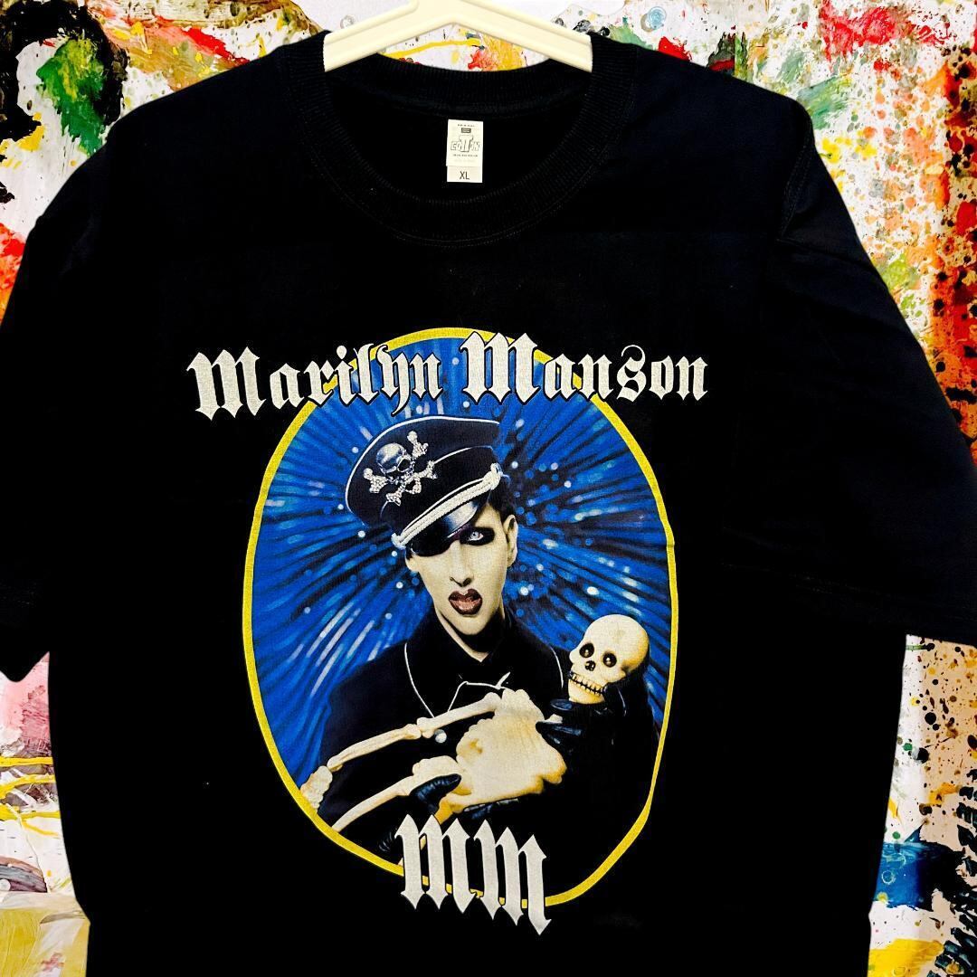 マリリンマンソン リプリント Tシャツ 半袖 メンズ 新品 個性的 黒 ② ロックバンド ブライアン・ヒュー・ワーナー 新品未使用 レトロ 個性的 奇抜 エモい バンドT 攻め 前衛的 ヴィンテージリプリント 男性 衣類 トップス お洒落 ハイデザイン