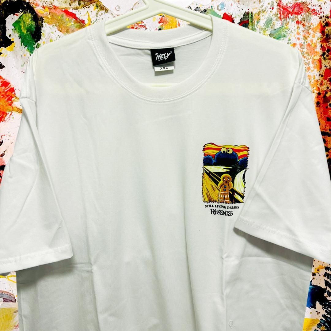 クッキーモンスター Tシャツ 半袖 メンズ 新品 個性的 白 ムンクの叫び 新品 新品未使用 レトロ 個性的 奇抜 エモい バンドT カットソー 攻め 前衛的 ヴィンテージリプリント 古着 好き綿 男性 衣類 トップス お洒落 ハ ミット エルモ クッキーモンスター ビッグバード バート アーニー オスカー イデザイン 男性