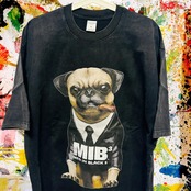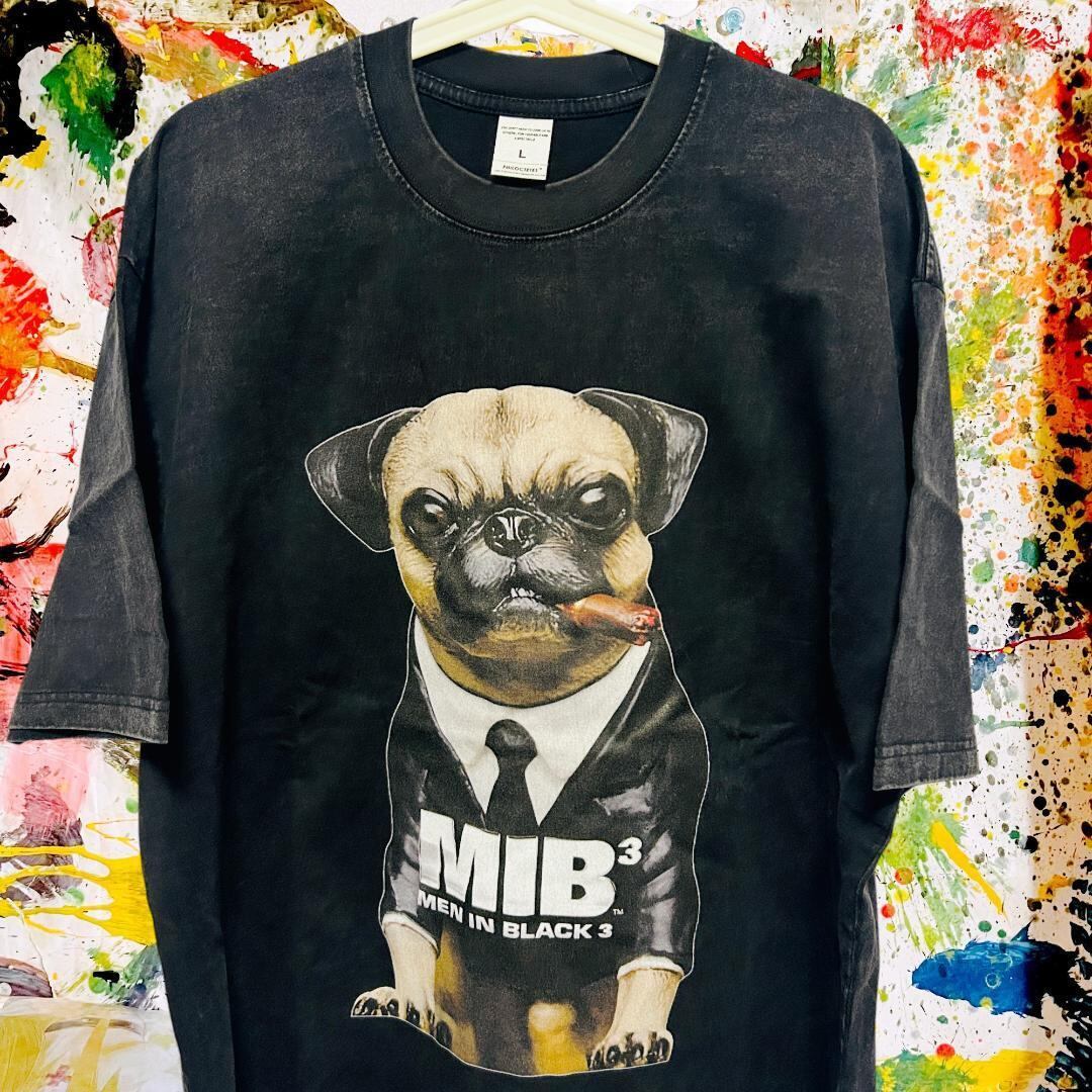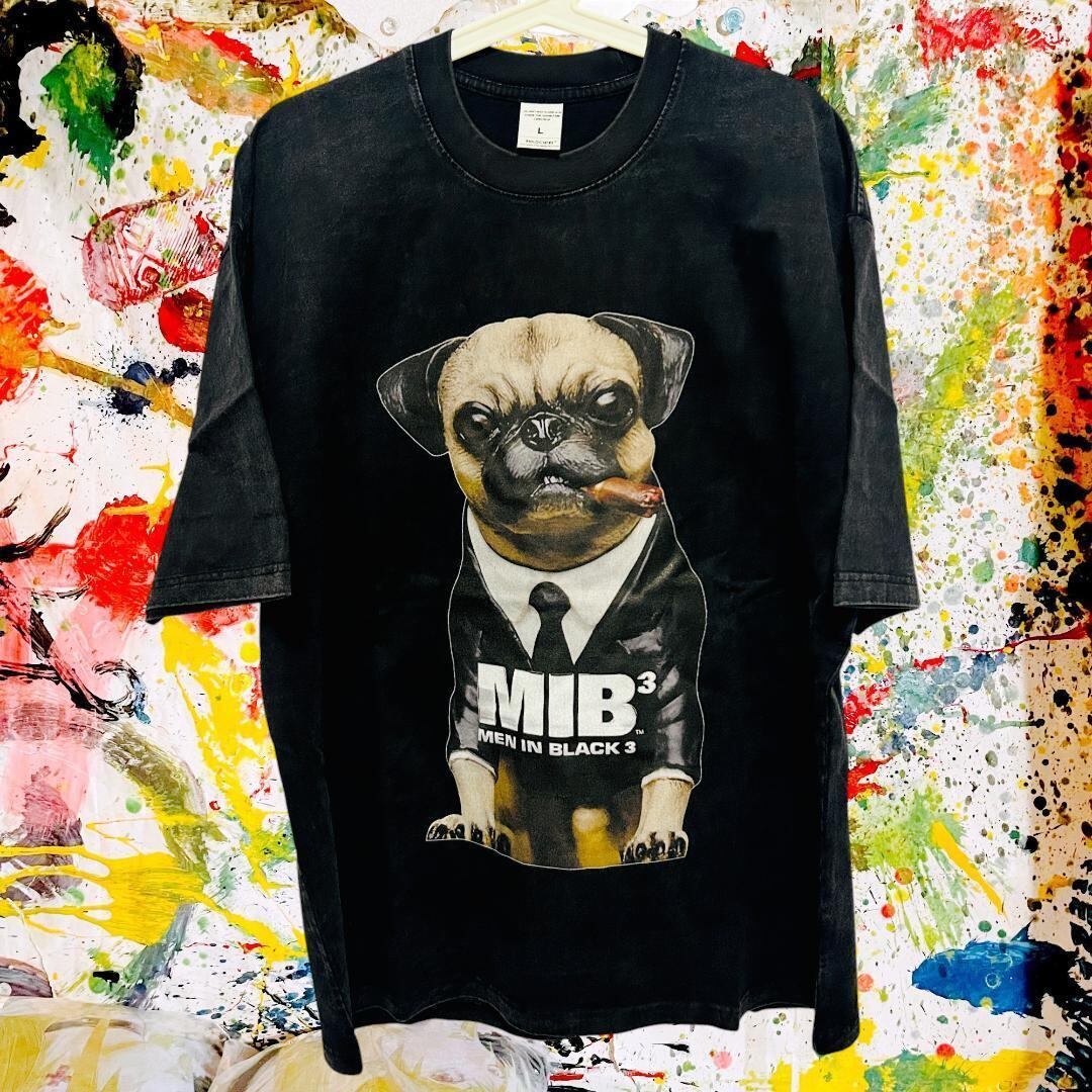 メンインブラック パグ 犬 ケミカルウォッシュ Tシャツ 半袖 メンズ 個性的 メンインブラック Tシャツ 映画T 90s ヴィンテージ SF映画 ウィルスミス エージェント ストリートコーデ 映画グッズ 映画ファッション ブラックコーデ ネオレトロ 宇宙系