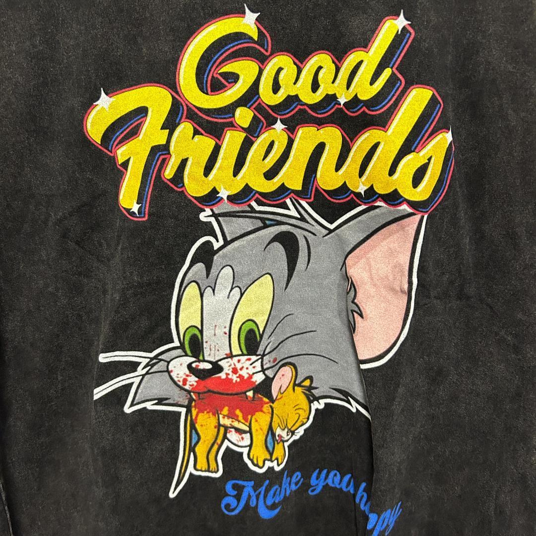 トムとジェリー メンズ Tシャツ 半袖 ケミカルウォッシュ 黒 XL L 新品 新品未使用 レトロ 個性的 奇抜 エモい バンドT カットソー 攻め 前衛的 ヴィンテージリプリント 古着 好き綿 男性 衣類 トップス お洒落 ハイデザイン 男性