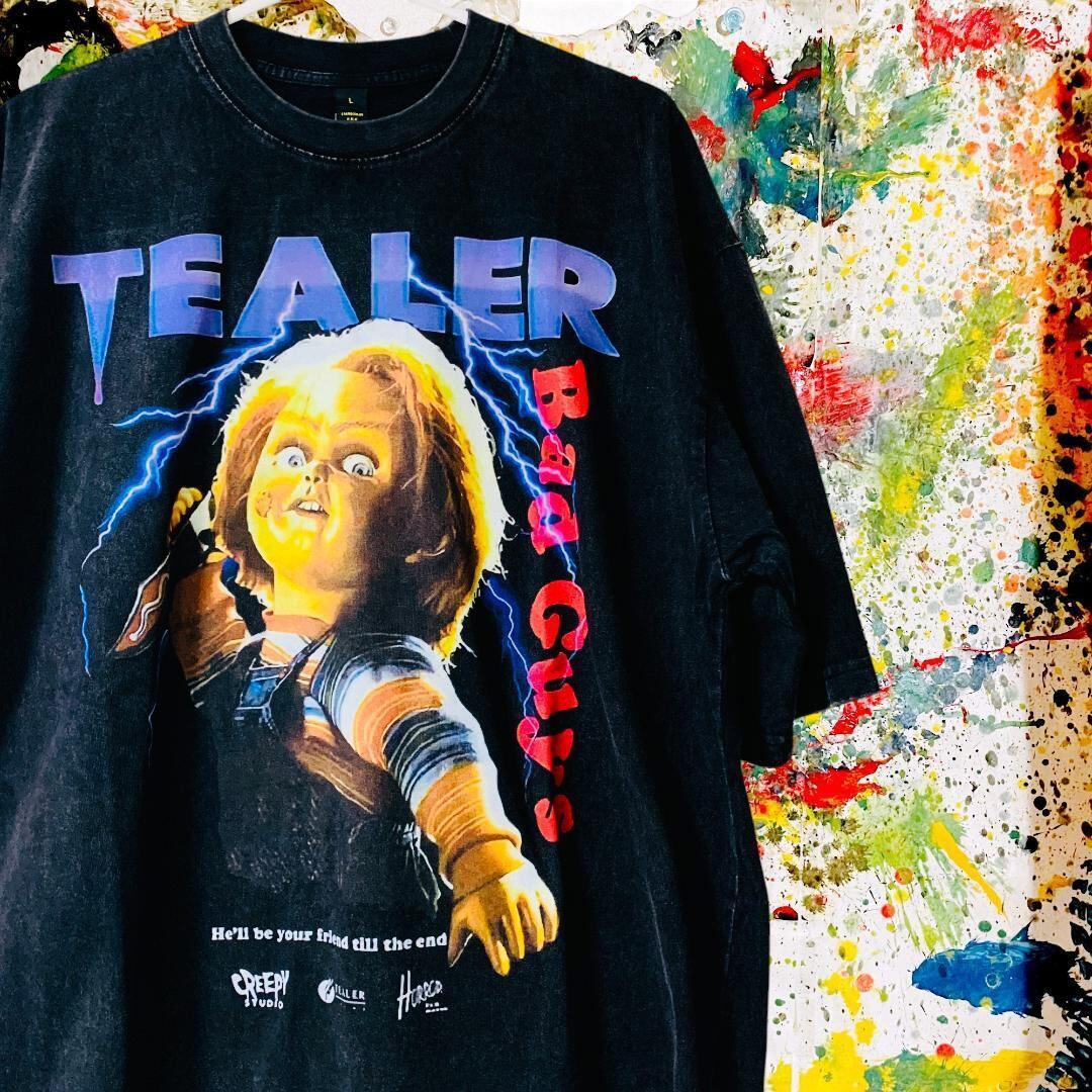 チャッキー ケミカルウォッシュ リプリント Tシャツ 半袖 メンズ 新品 個性的 チャイルドプレイ チャッキー ブラッド・ドゥーリフ ティファニー グッドガイ人形 ホラー映画 80年代ホラー スプラッタームービー スラッシャー映画 ヴィンテージホラー カルト映画 ホラーキャラクター 殺人人形 クラシックホラー 映画Tシャツ ダークファッション ゴシックデザイン モノクロTシャツ ヴィンテージTシャツ 個性派ファッション ストリートファッション レトロデザ