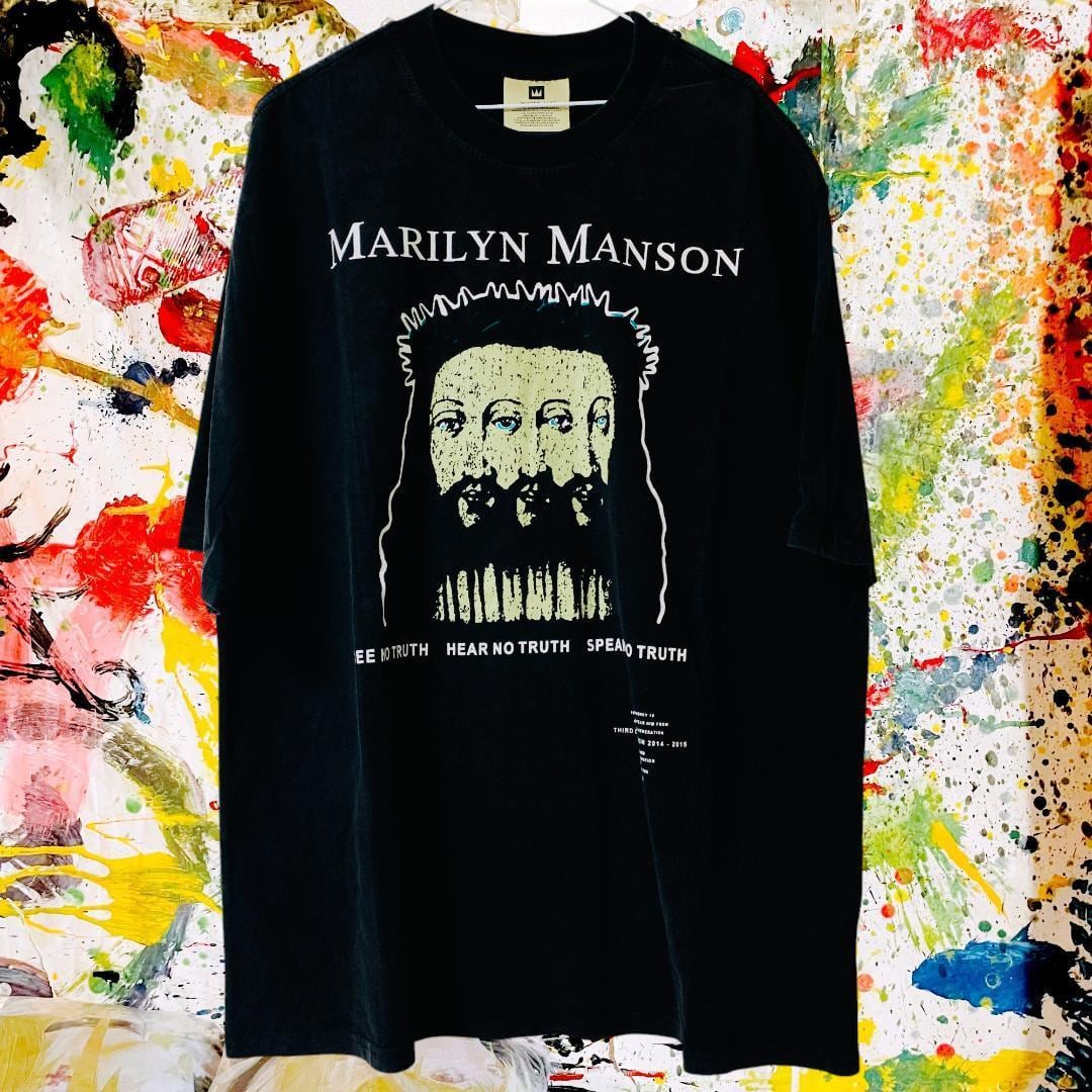 マリリンマンソン ロックアーティスト ヘヴィメタル ゴシックロック インダストリアルメタル ショックロック 90年代ロック オルタナティブロック ダークファッション ヴィジュアルアート ブラックコーデ ヴィンテージTシャツ バンドTシャツ カルトアイコン サブカルファッション パンクスタイル モノクロデザイン グランジファッション ストリートファッション 個性派ファッション ハードコアロック ホラーアート ダークウェア ヘビィロックTシャツ ゴシックTシャツ