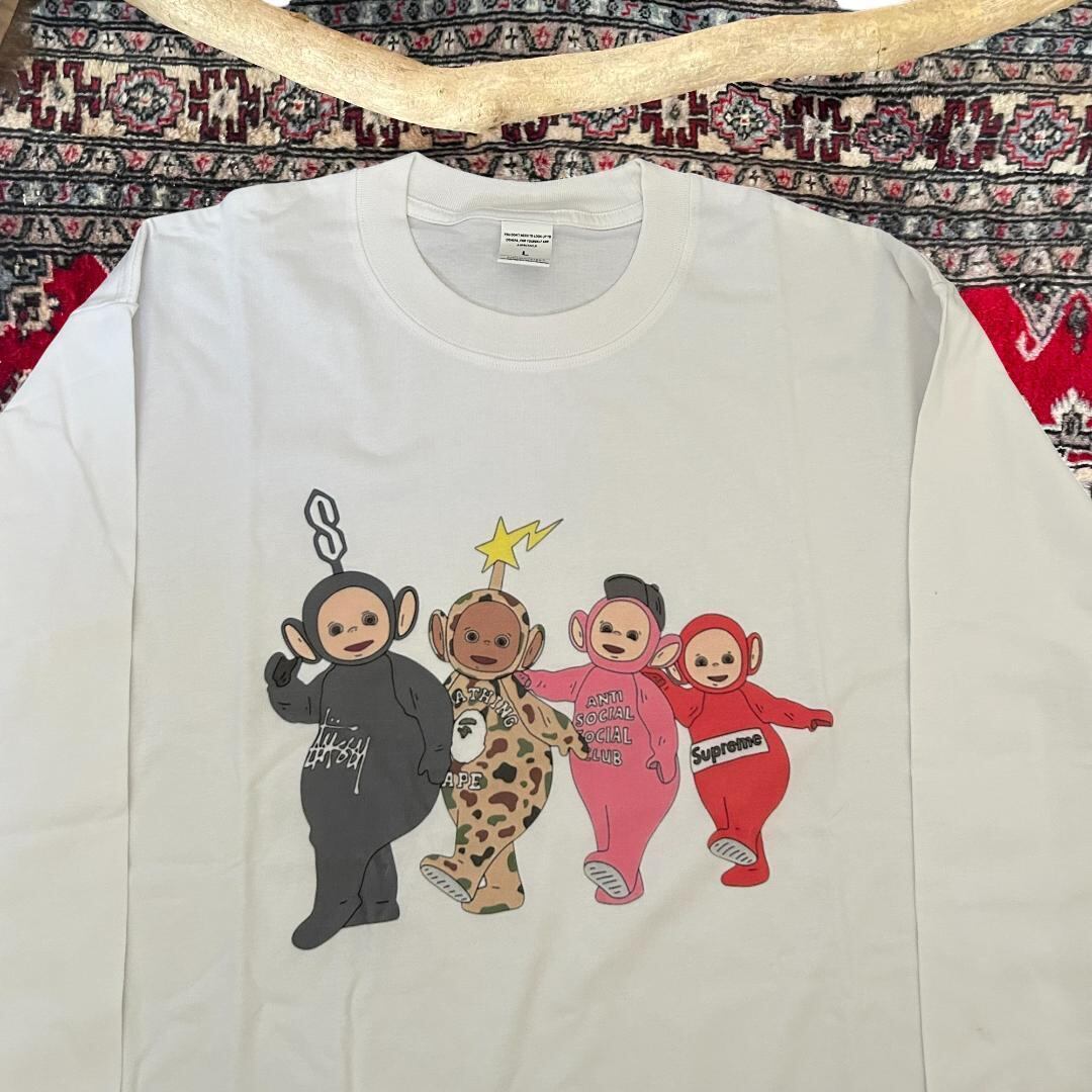 テレタビーズ ロゴ リプリント ロンT 長袖 メンズ 新品 ホワイト R2 新品 新品未使用 レトロ 個性的 奇抜 エモい バンドロンT カットソー 攻め 前衛的 ヴィンテージリプリント 古着 好き綿 男性 衣類 トップス お洒落 ハイデザイン 男性
