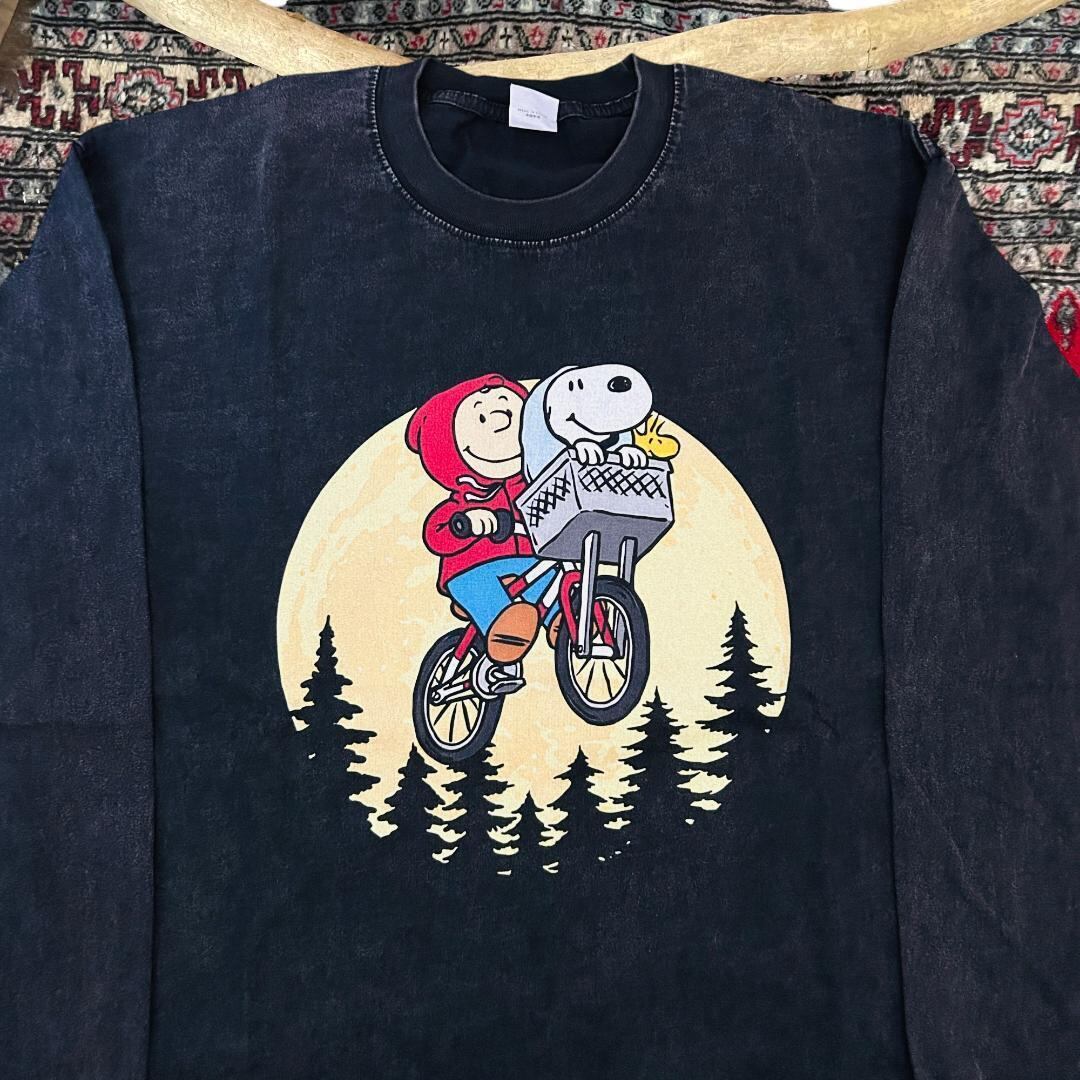 ET スヌーピー アバンギャルド リプリント ロンT 長袖 メンズ 黒 R6 新品 新品未使用 レトロ 個性的 奇抜 エモい バンドロンT カットソー 攻め 前衛的 ヴィンテージリプリント 古着 好き綿 男性 衣類 トップス お洒落 ハイデザイン 男性