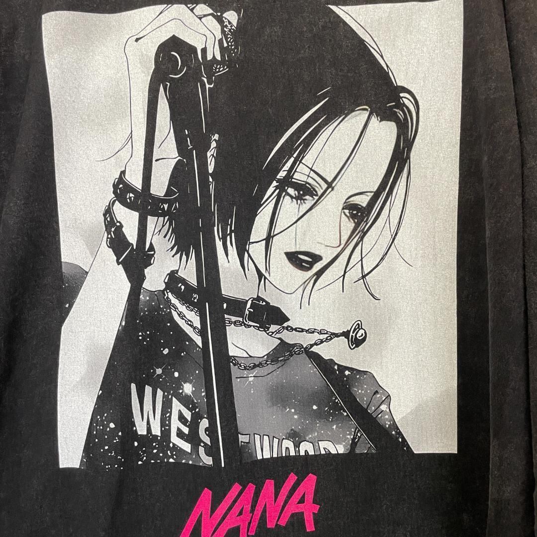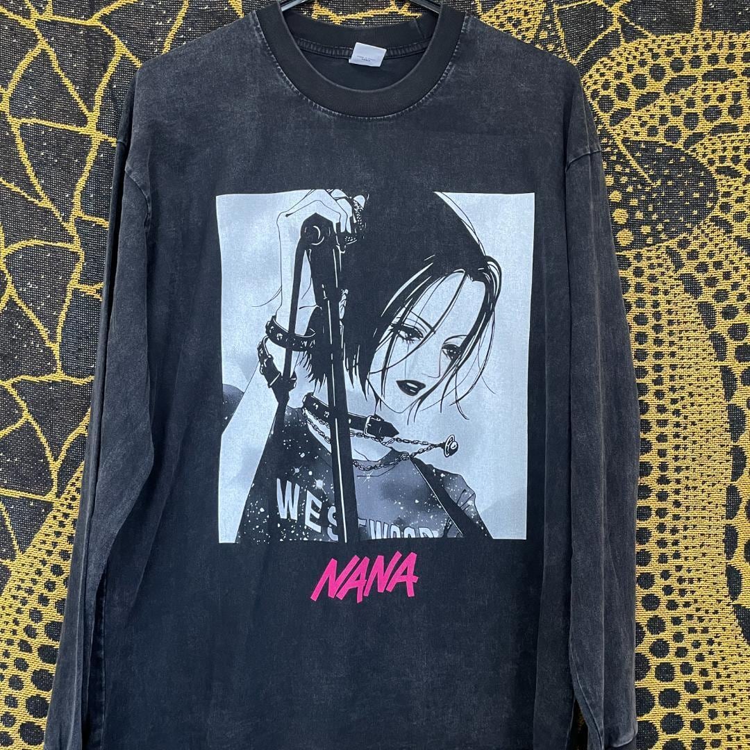 NANA メンズ ロンT 長袖 ケミカルウォッシュ 黒 3 平成レトロ R22 矢沢あい 矢沢愛 大崎ナナ 小松奈々 ハチ TRAPNEST ブラックストーンズ BLAST レン ヤス ノブ シン NANAアニメ NANA映画 中島美嘉 宮崎あおい