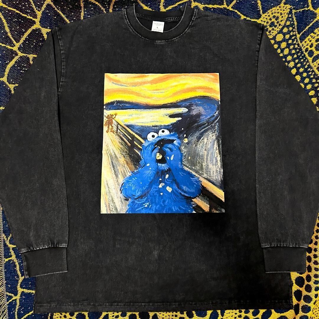 クッキーモンスター ロンT 長袖 メンズ 新品 個性的 黒 ムンクの叫び N43 CookieMonster セサミストリート SesameStreet