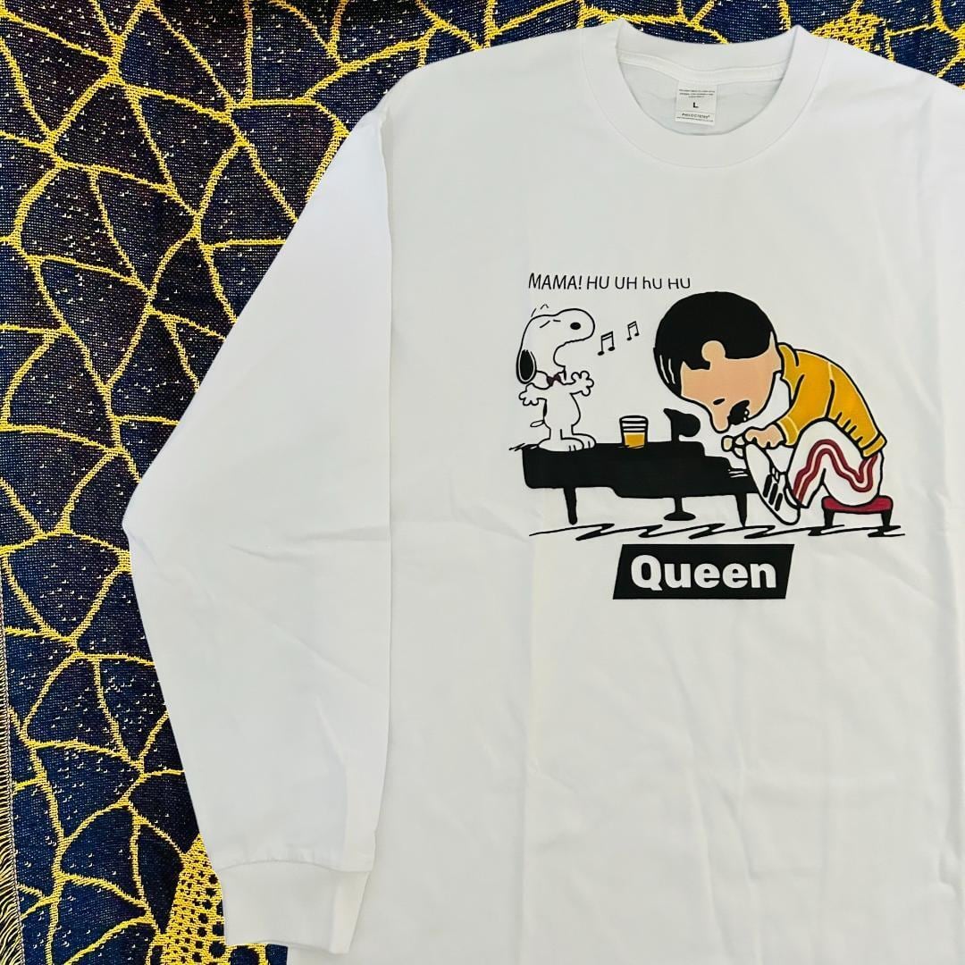 クイーン バンド リプリント ロンT 長袖 ホワイト N88 スヌーピー ピーナッツ ウッドストック クイーン Queen フレディマーキュリー