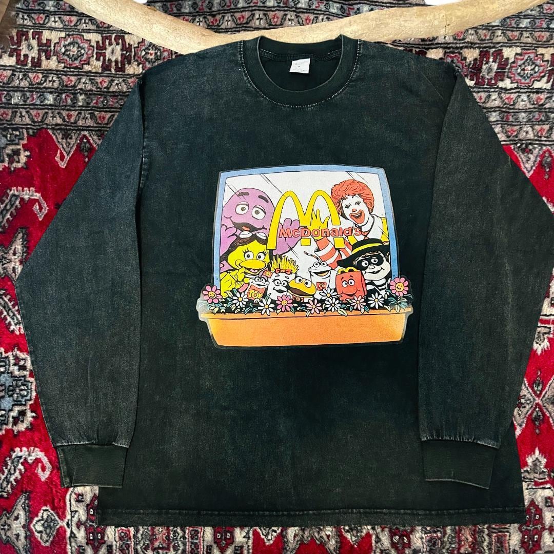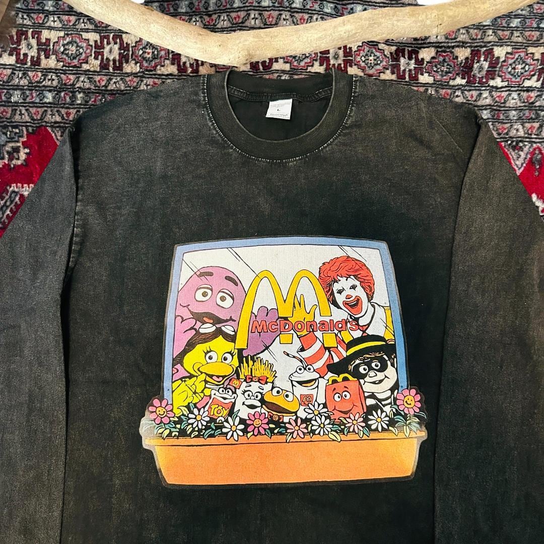 ドナルドマクドナルド ケミカルウォッシュ Tシャツ 半袖 メンズ R91 新品 新品未使用 レトロ 個性的 奇抜 エモい ロンT カットソー 攻め 前衛的 ヴィンテージリプリント 古着 好き綿 男性 衣類 トップス お洒落 ハイデザイン 男性