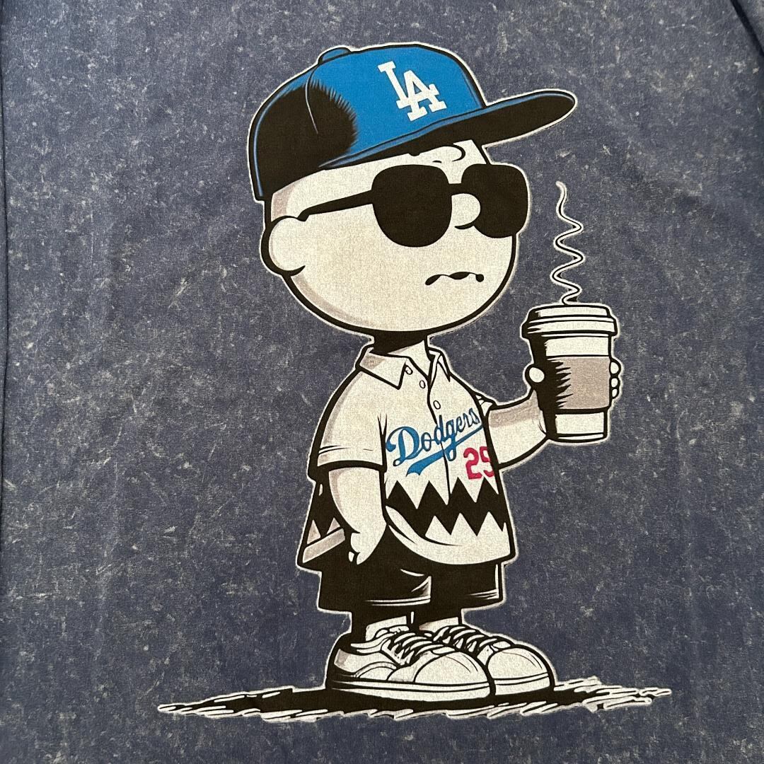 ドジャース チャーリーブラウン ブルー ロンT 長袖 メンズ R103 Dodgers MLB ケミカルウォッシュ ストリート LA お洒落