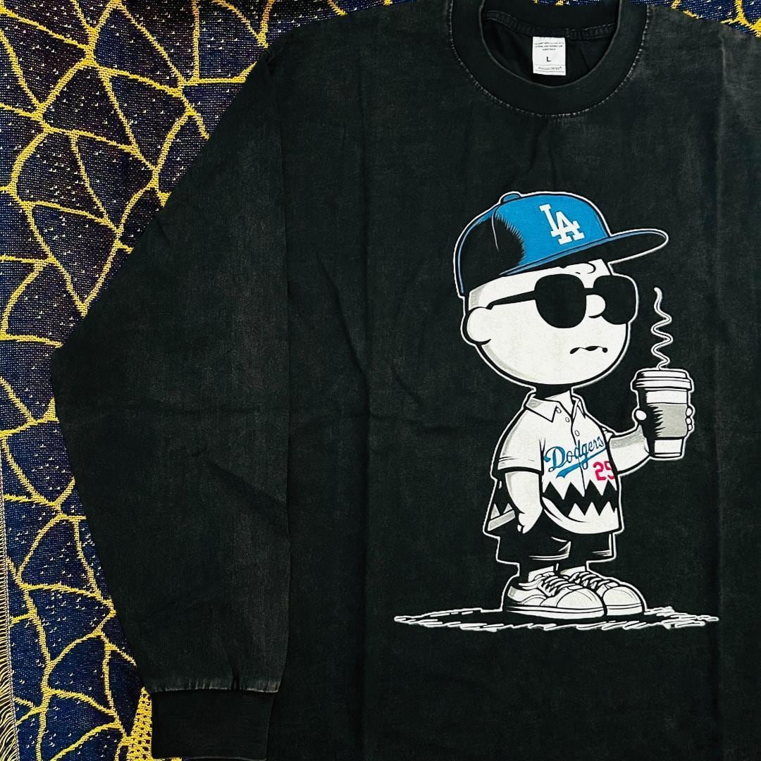 ドジャース チャーリーブラウン リプリント ロンT 長袖 黒 R104 fubby Gremlins クリスマス SFブラック ウォッシュ加工