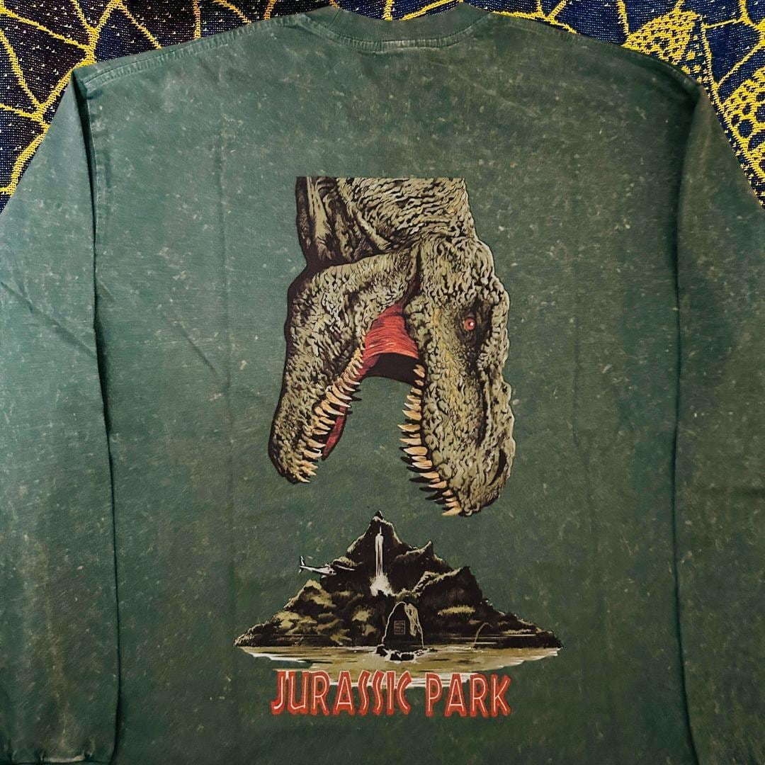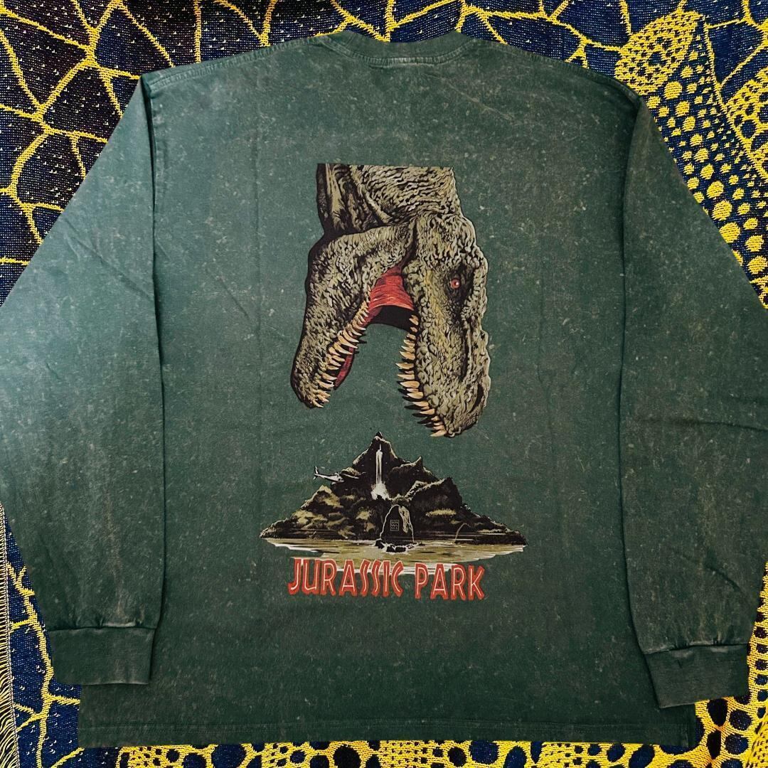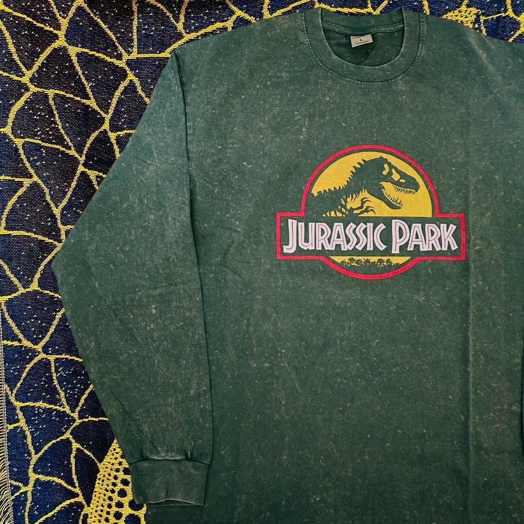 ジュラシックパーク 緑 リプリント ロンT 長袖 メンズ グリーン N1 ジュラシックワールド島 恐竜 ティラノサウルス Tレックス