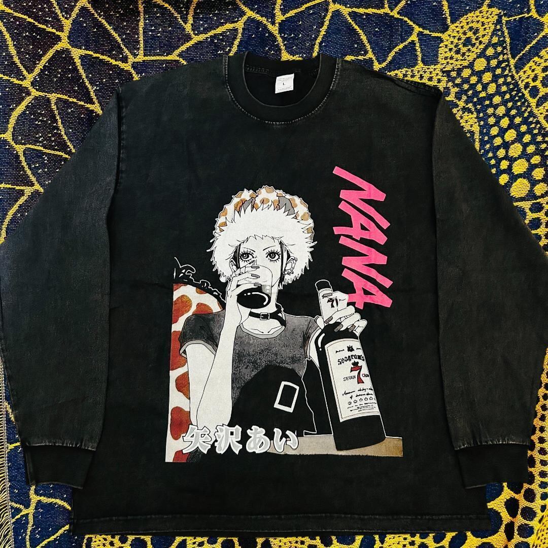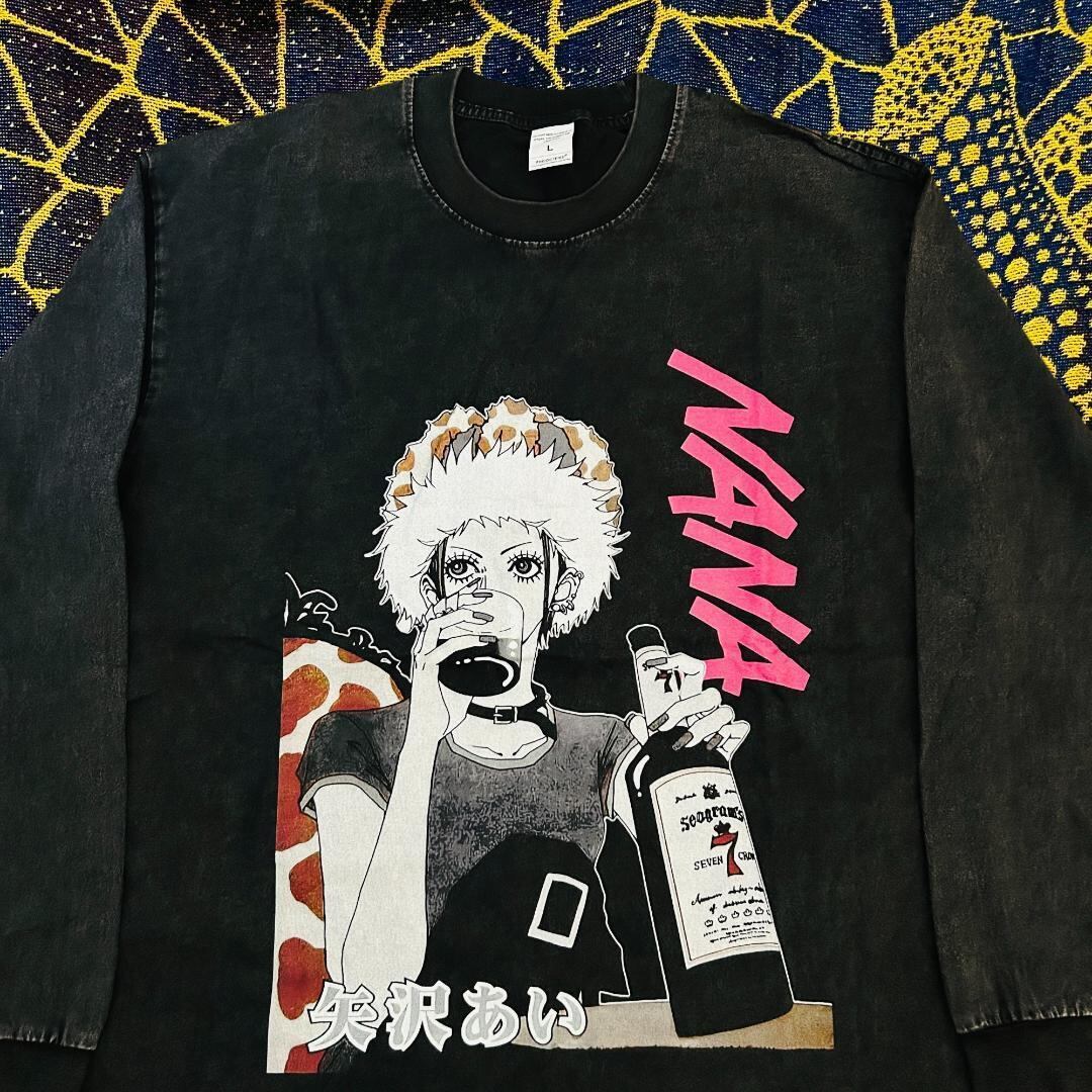 NANA メンズ ロンT 長袖 夏 ケミカルウォッシュ 黒 平成レトロ R56 矢沢あい パンクロック 少女漫画 ナナ 大崎ナナ 小松奈々 中島美嘉