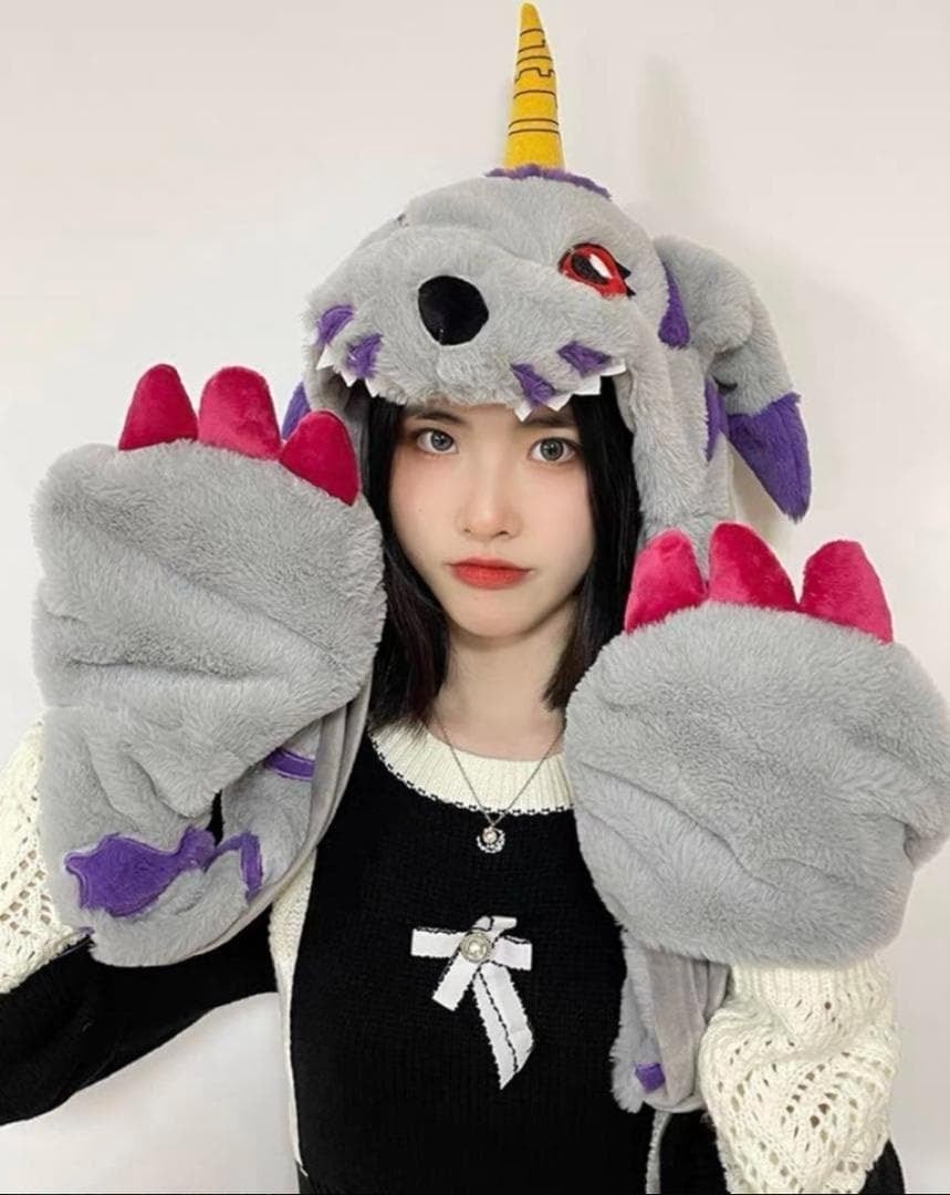 ガブモン 被り物 暖かい マフラー フード 平成レトロ コスプレ デジモン アグモン テイルモン 帽子 冬