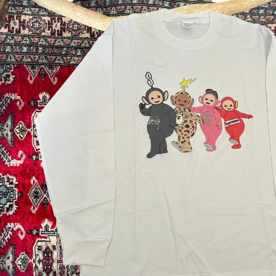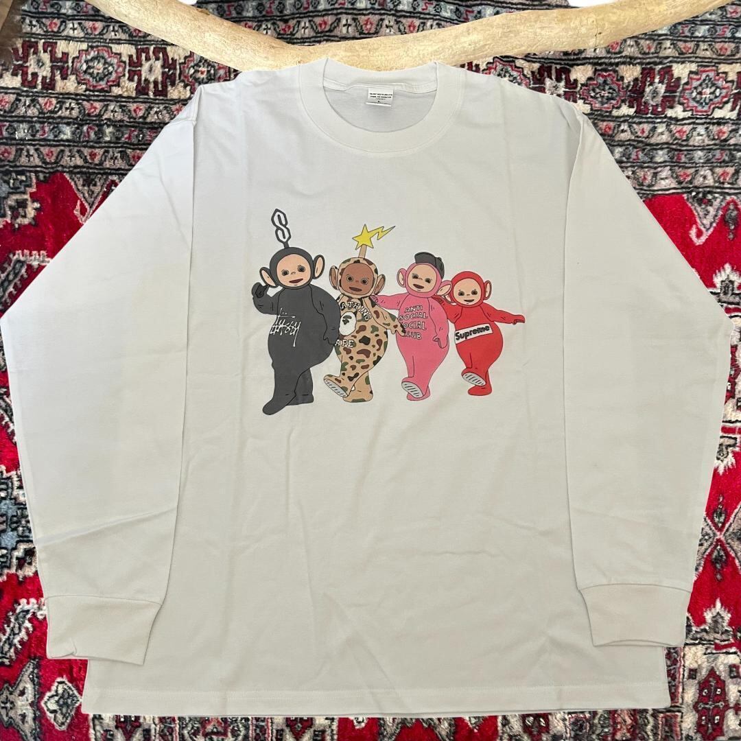 テレタビーズ ロゴ リプリント ロンT 長袖 メンズ 新品 ホワイト R2 新品 新品未使用 レトロ 個性的 奇抜 エモい バンドロンT カットソー 攻め 前衛的 ヴィンテージリプリント 古着 好き綿 男性 衣類 トップス お洒落 ハイデザイン 男性
