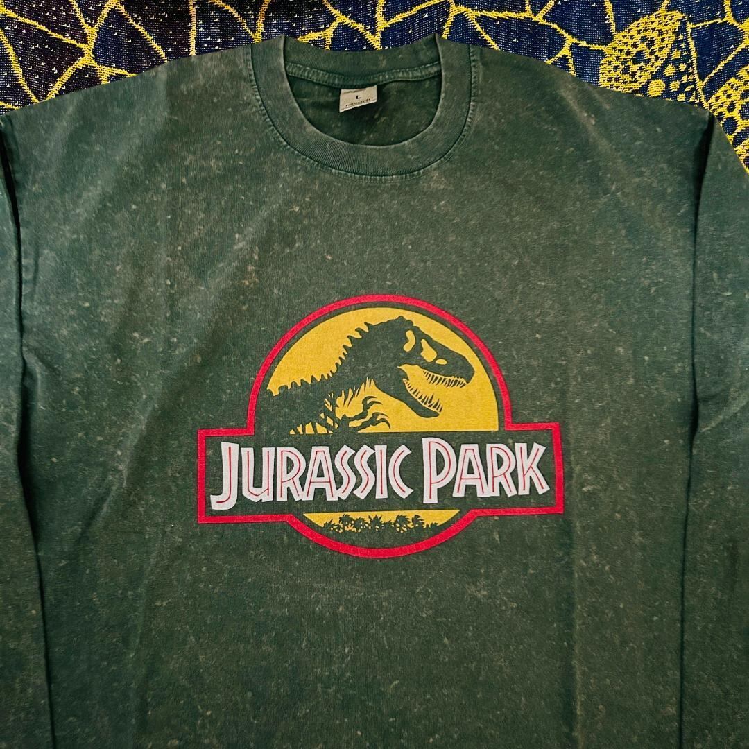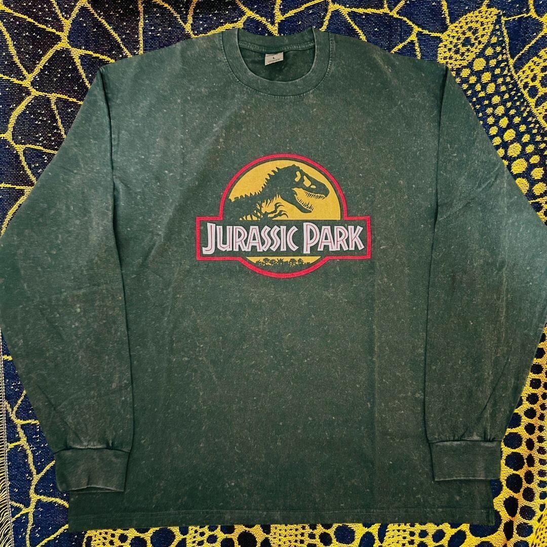 ジュラシックパーク 緑 リプリント ロンT 長袖 メンズ グリーン N1 ジュラシックワールド島 恐竜 ティラノサウルス Tレックス
