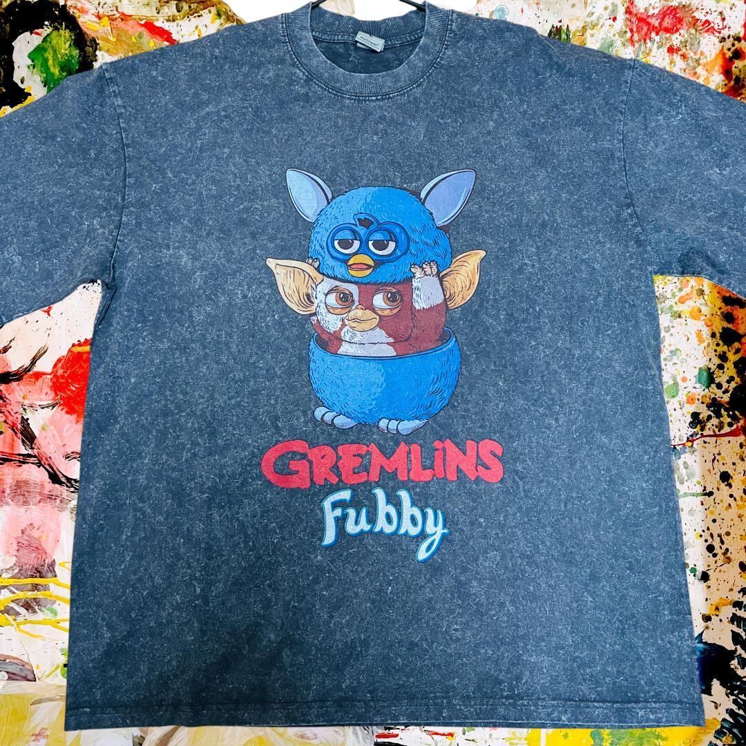 ファービー feat グレムリン グレー Tシャツ 半袖 メンズ ケミカル グレムリン ギズモ ウォッシュ加工 半袖 Tシャツ 夏 新品 グレー 映画 FurbyTシャツ ティーシャツ ウォッシュ グレー 攻め 前衛的 男性 B