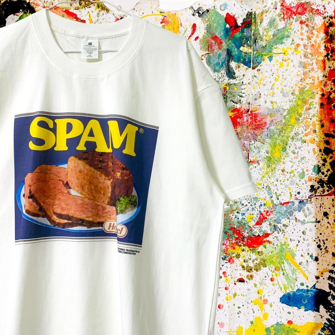 SPAM レトロ リプリント Tシャツ 半袖 メンズ 新品 個性的 白 レトロ 個性的 奇抜 ビンテージ ヴィンテージ 新品 新品未使用 レトロ 個性的 奇抜 エモい バンドT カットソー 攻め 前衛的 ヴィンテージリプリント 古着 好き綿 男性 衣類