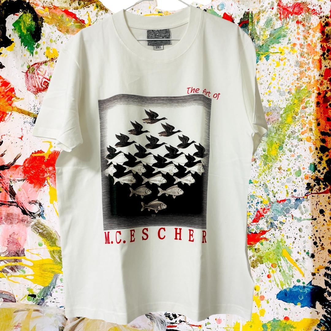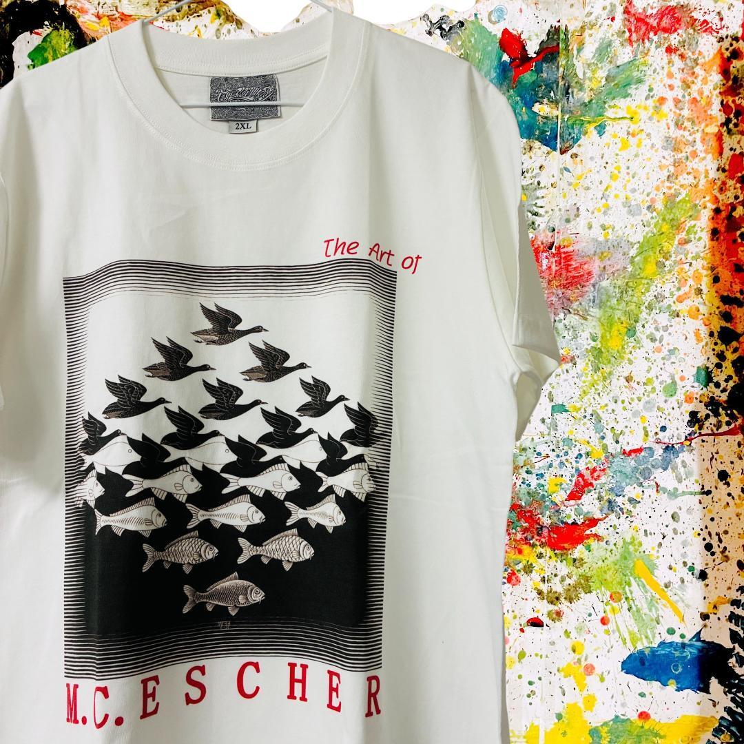 マウリッツ エッシャー リプリント Tシャツ 半袖 メンズ 芸術 画家 ホワイト 新品 新品未使用 レトロ 個性的 奇抜 エモい バンドT カットソー 攻め 前衛的 ヴィンテージリプリント 古着 好き綿 男性 衣類 トップス お洒落 ハイデザイン 男性