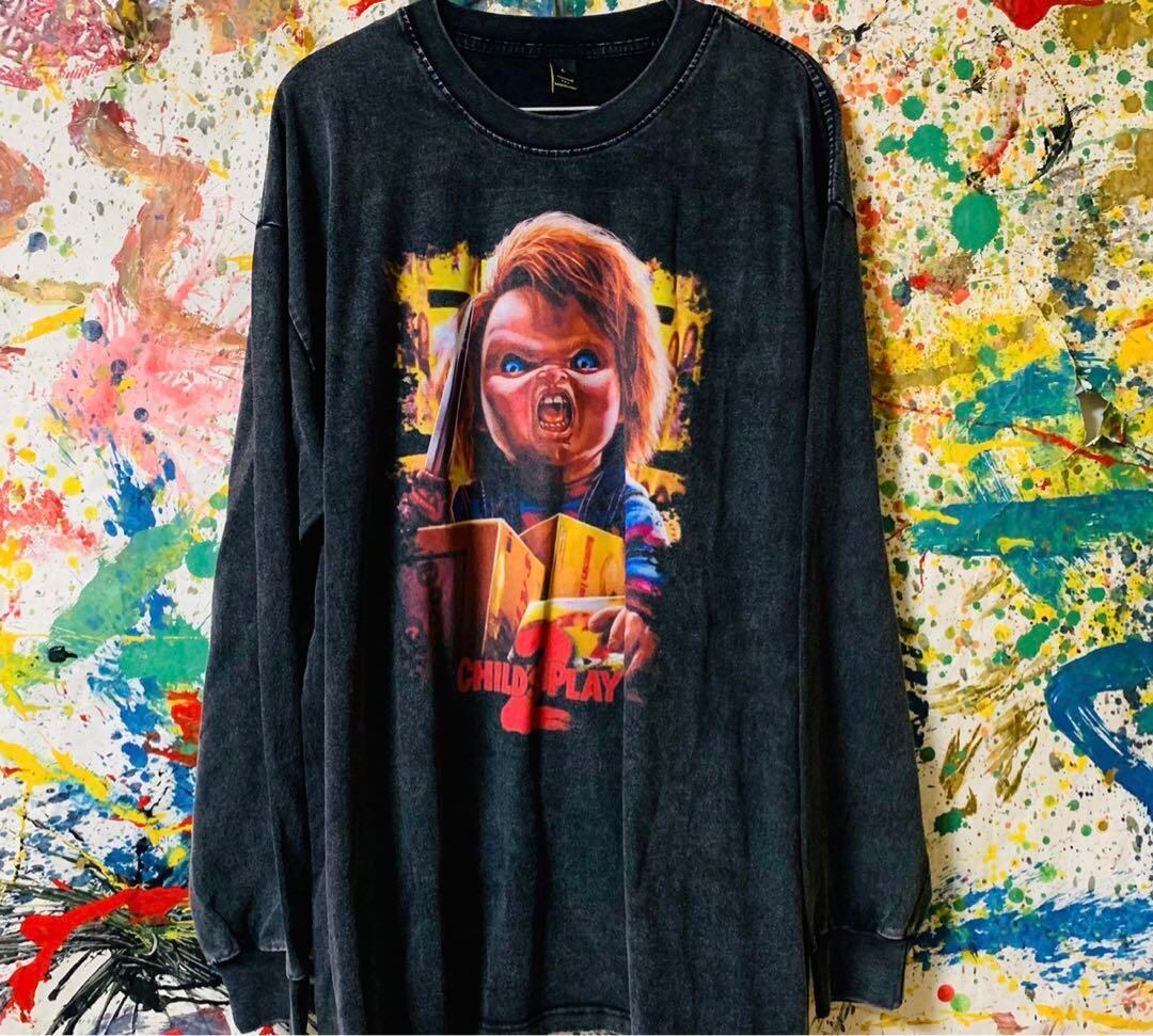 チャッキー メンズ ロンT 長袖 ケミカルウォッシュ 黒 XL XXL