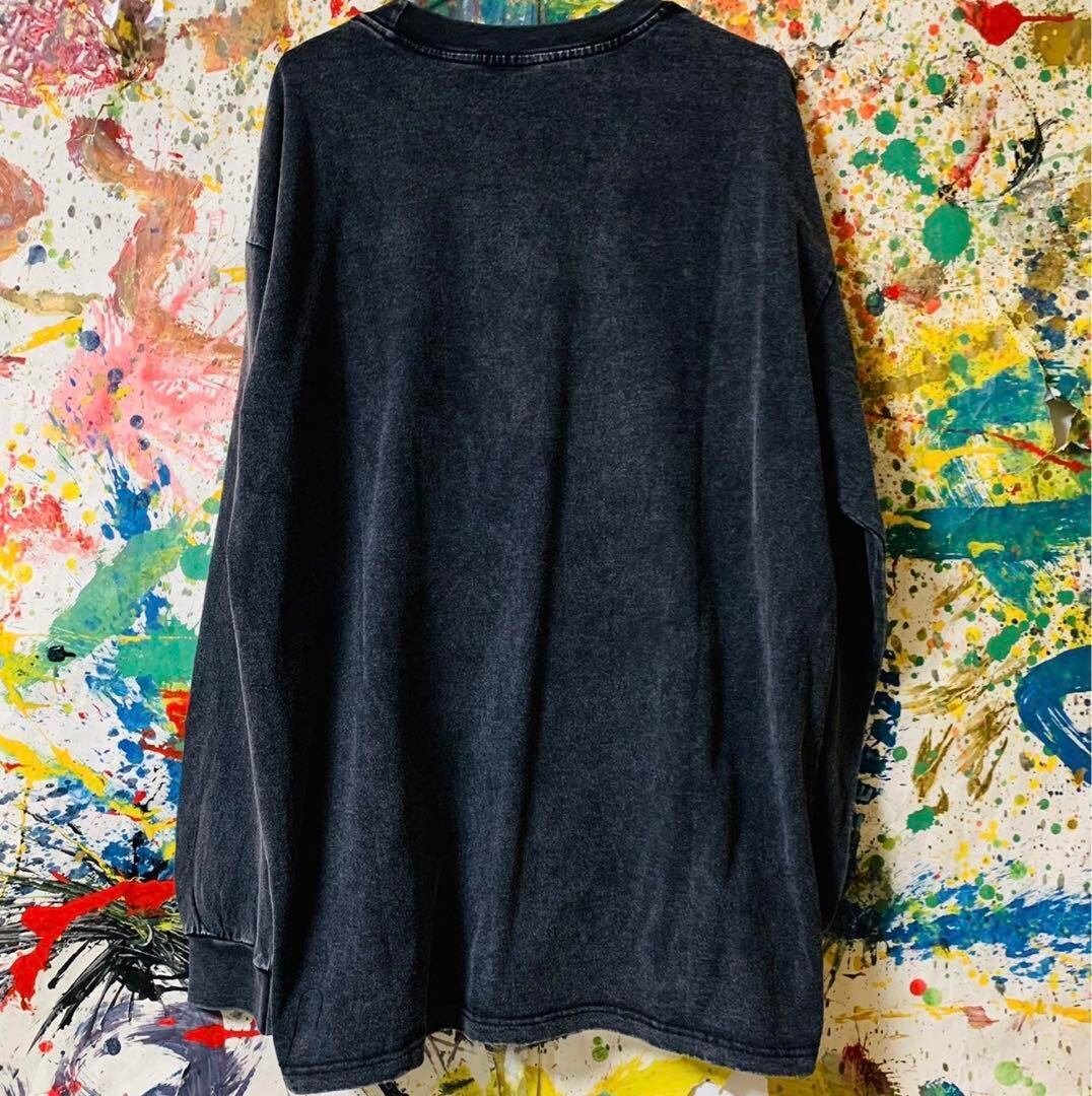 グロテスク 花魁 メンズ ロンT 長袖 ケミカルウォッシュ 黒 ホラー秋冬