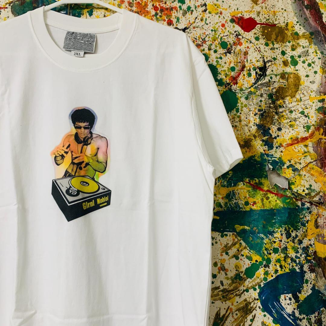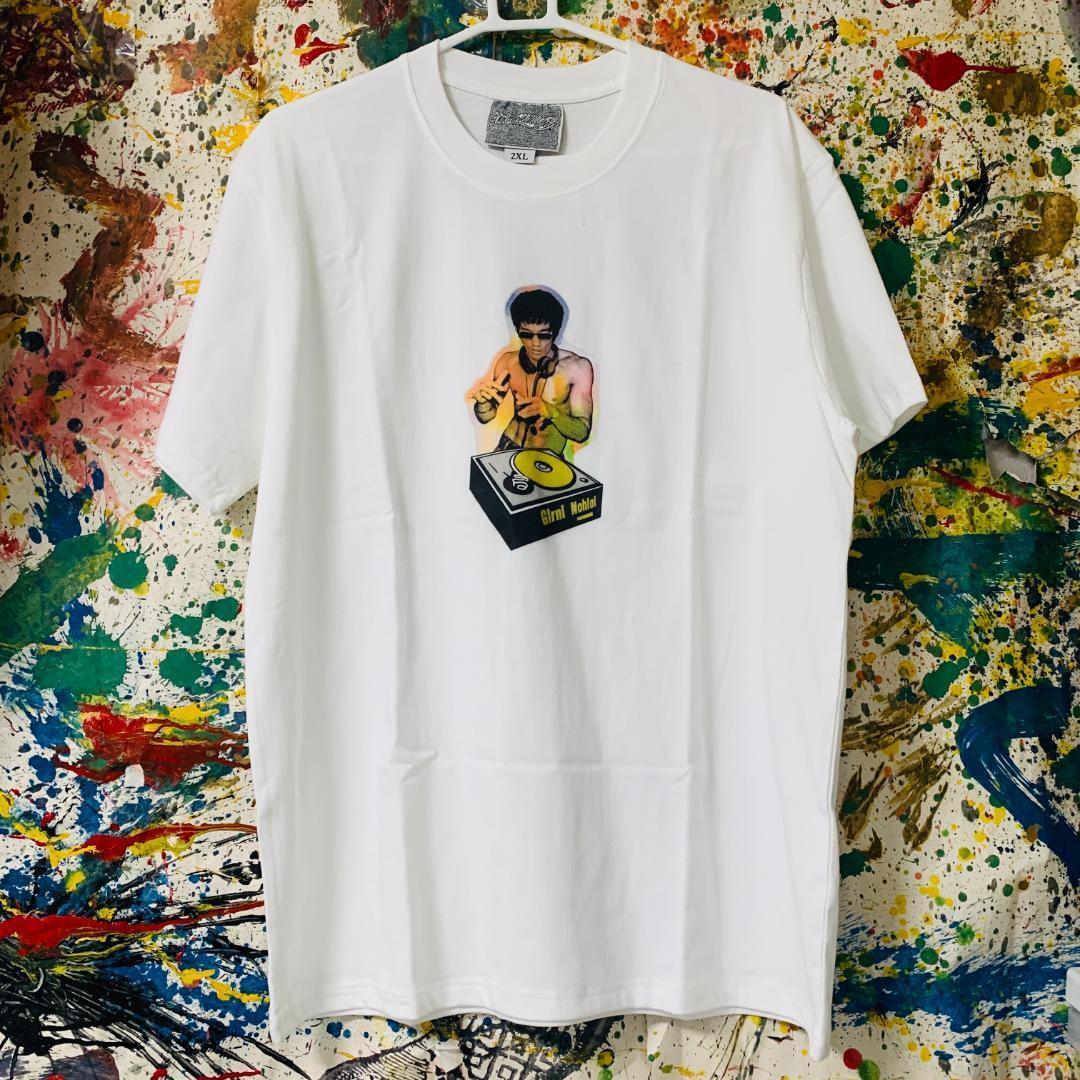 ブルースリー DJ レトロ リプリント Tシャツ 半袖 メンズ 新品 個性的 白 ホワイト ティーシャツ カンフー DJ アバンギャルド ハイデザイン