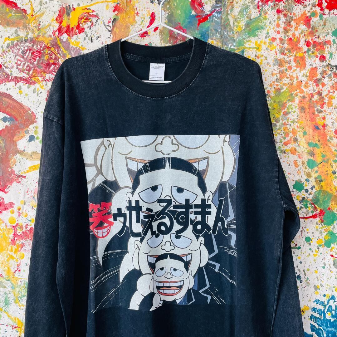 笑ゥせぇるすまん メンズ リプリント ロンT 長袖 秋 冬L XL アニメ お洒落 ハイデザイン 男性 アニメ 漫画 レトロ ブラック 個性的 エモい 喪黒福造