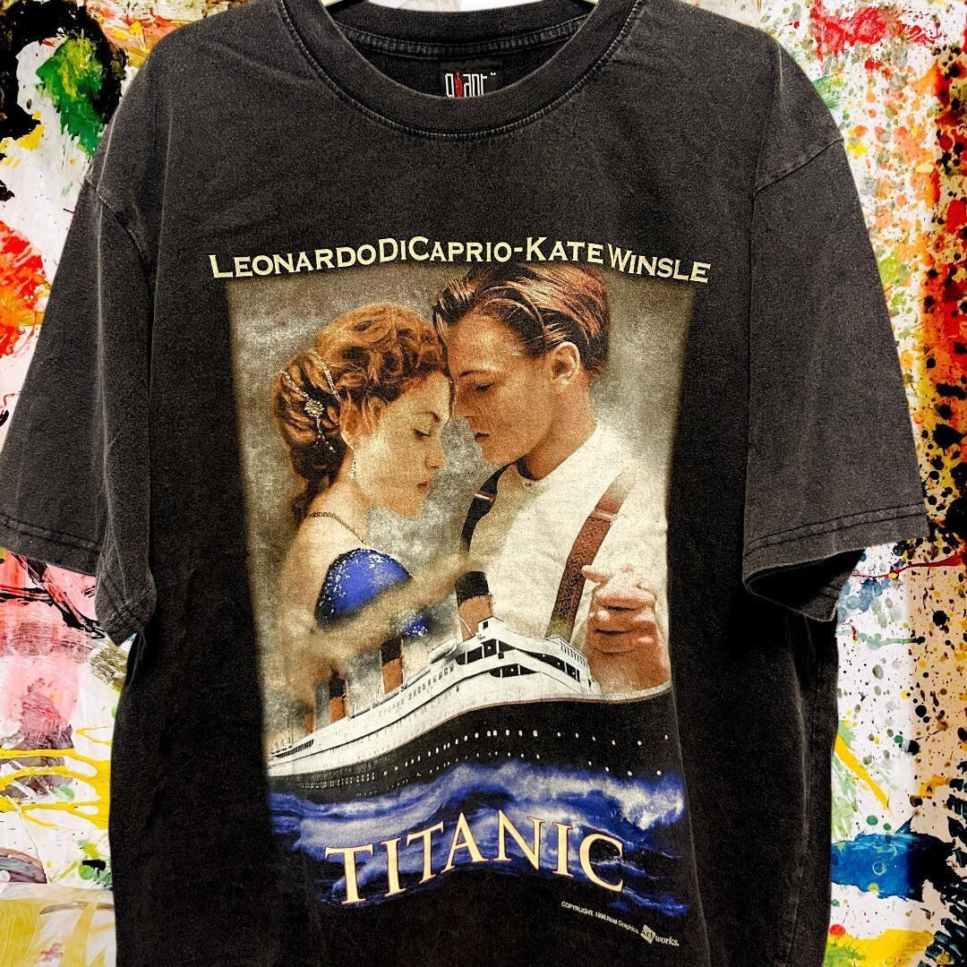 タイタニック Tシャツ リプリント 半袖 メンズ L XL TITANIC ロマンス映画 新品未使用 レトロ 個性的 奇抜 エモい 映画T カットソー 攻め 前衛的 ヴィンテージリプリント 古着 好き綿 男性 衣類 トップス お洒落 ハイデザイン 男性