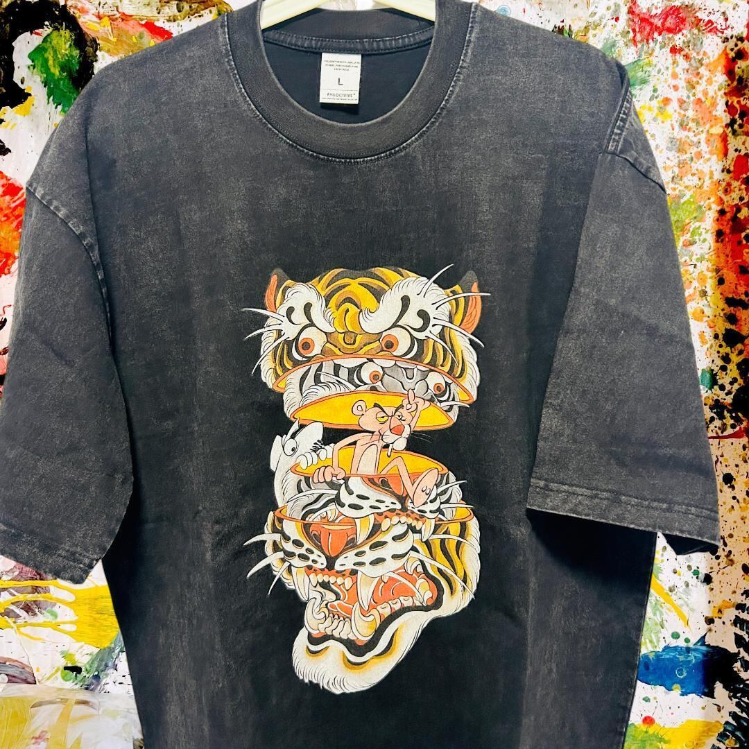 虎 ピンクパンサー ケミカルウォッシュ リプリント Tシャツ 半袖 メンズ 新品 ピンクパンサー Tシャツ キャラクターT 90s 80s ヴィンテージ アメリカンポップ ストリートファッション ピンクコーデ レトロアニメ ネオレトロ グラフィックT USJ